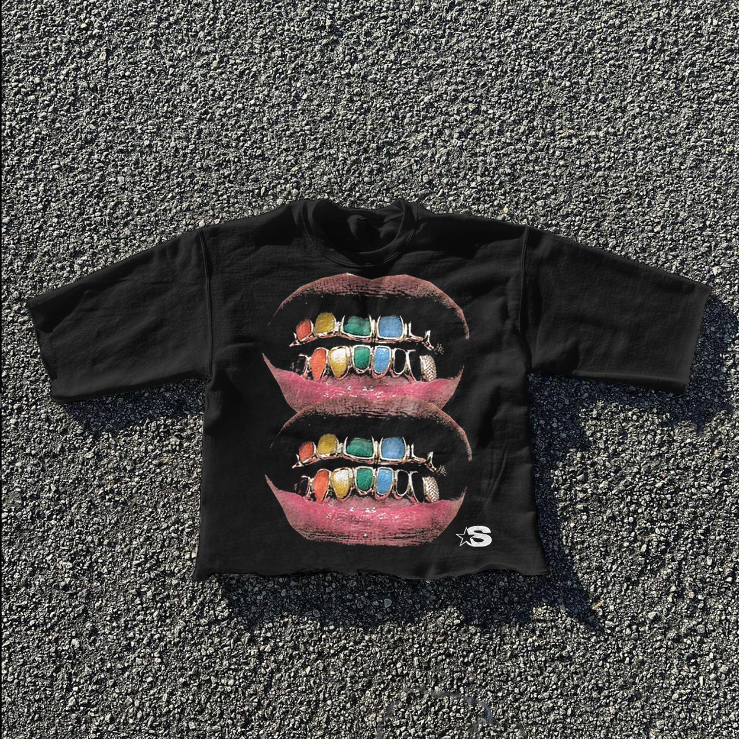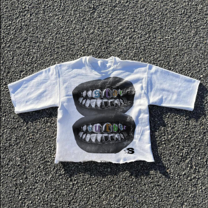 Casual loose lip print graphic T-shirt